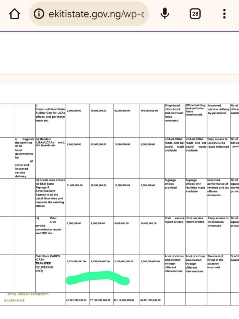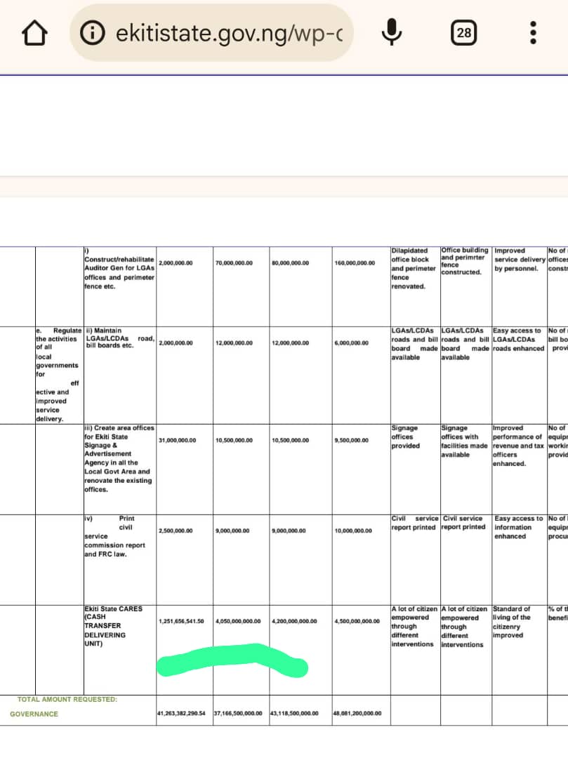 A review of the Ekiti State Medium-Term Expenditure Framework (MTEF) by SaharaReporters has revealed that the state government intends to spend N12.7 billion on cash transfer programmes between 2025 and 2027.