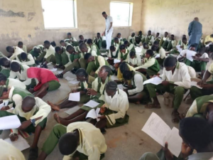 Students are forced to learn in dilapidated classrooms, some even writing exams on bare floors.